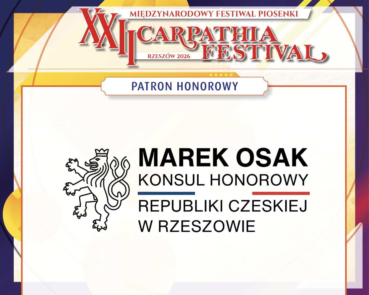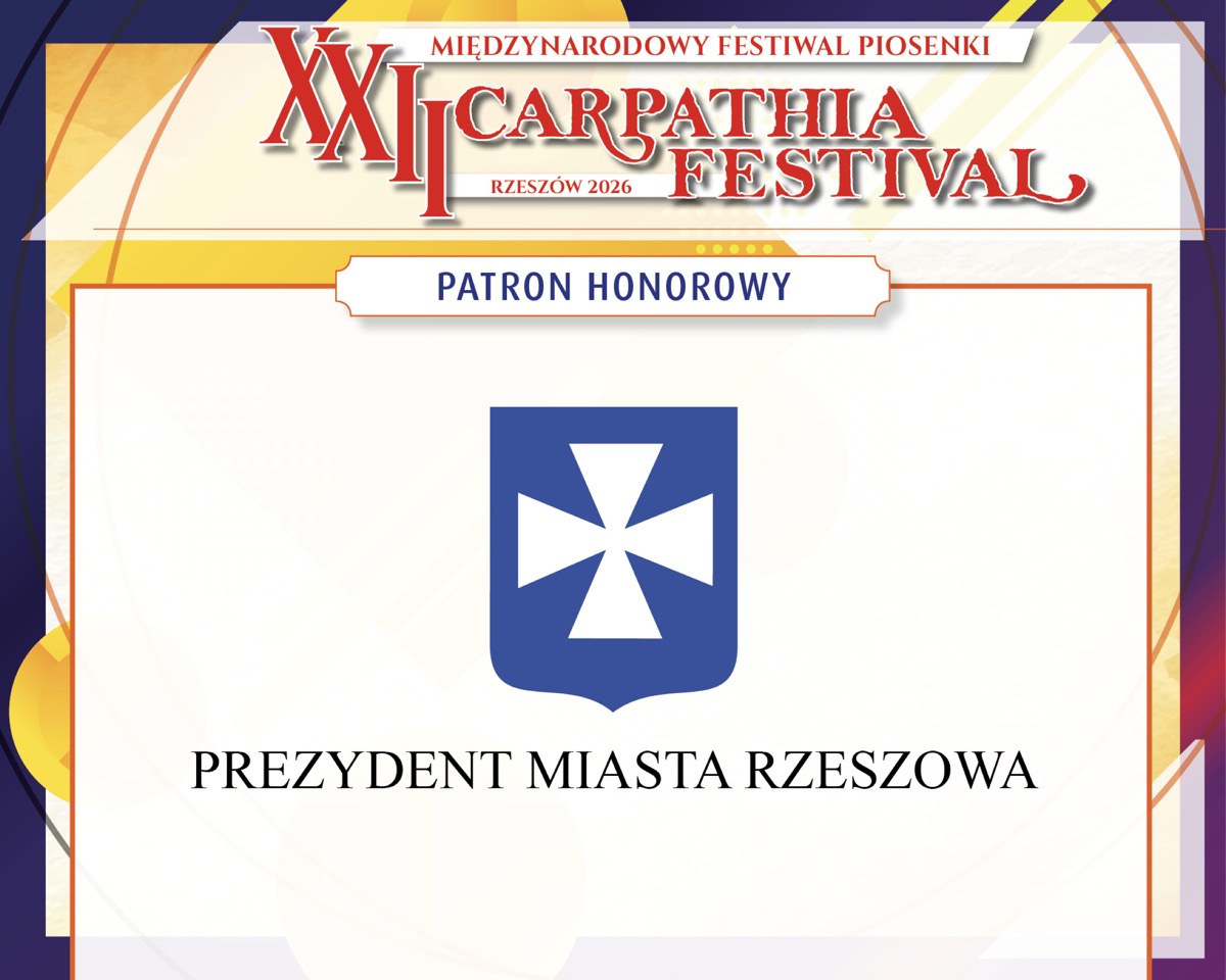 Z ogromną radością informujemy, że patronat honorowy nad XXII Międzynarodowym Festiwalem Piosenki Carpathia Festival – Rzeszów 2026 objęły i objęli najważniejsze instytucje oraz przedstawiciele władz regionu i miasta.