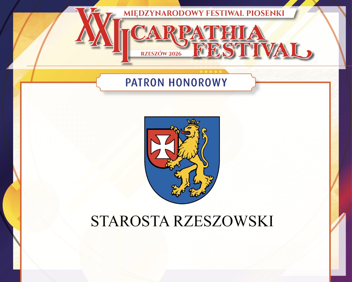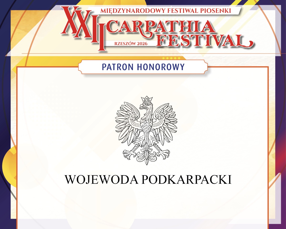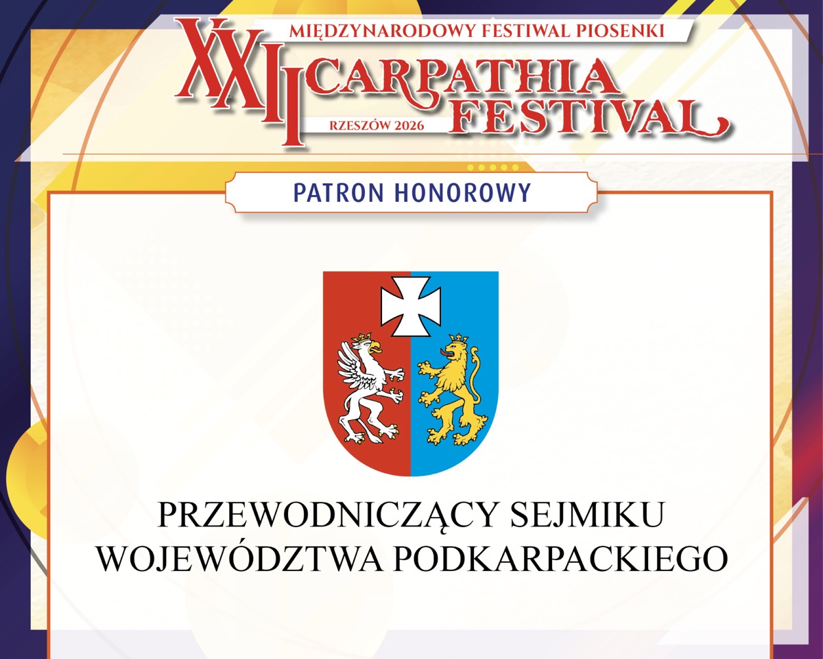 Z ogromną radością informujemy, że patronat honorowy nad XXII Międzynarodowym Festiwalem Piosenki Carpathia Festival – Rzeszów 2026 objęły i objęli najważniejsze instytucje oraz przedstawiciele władz regionu i miasta.